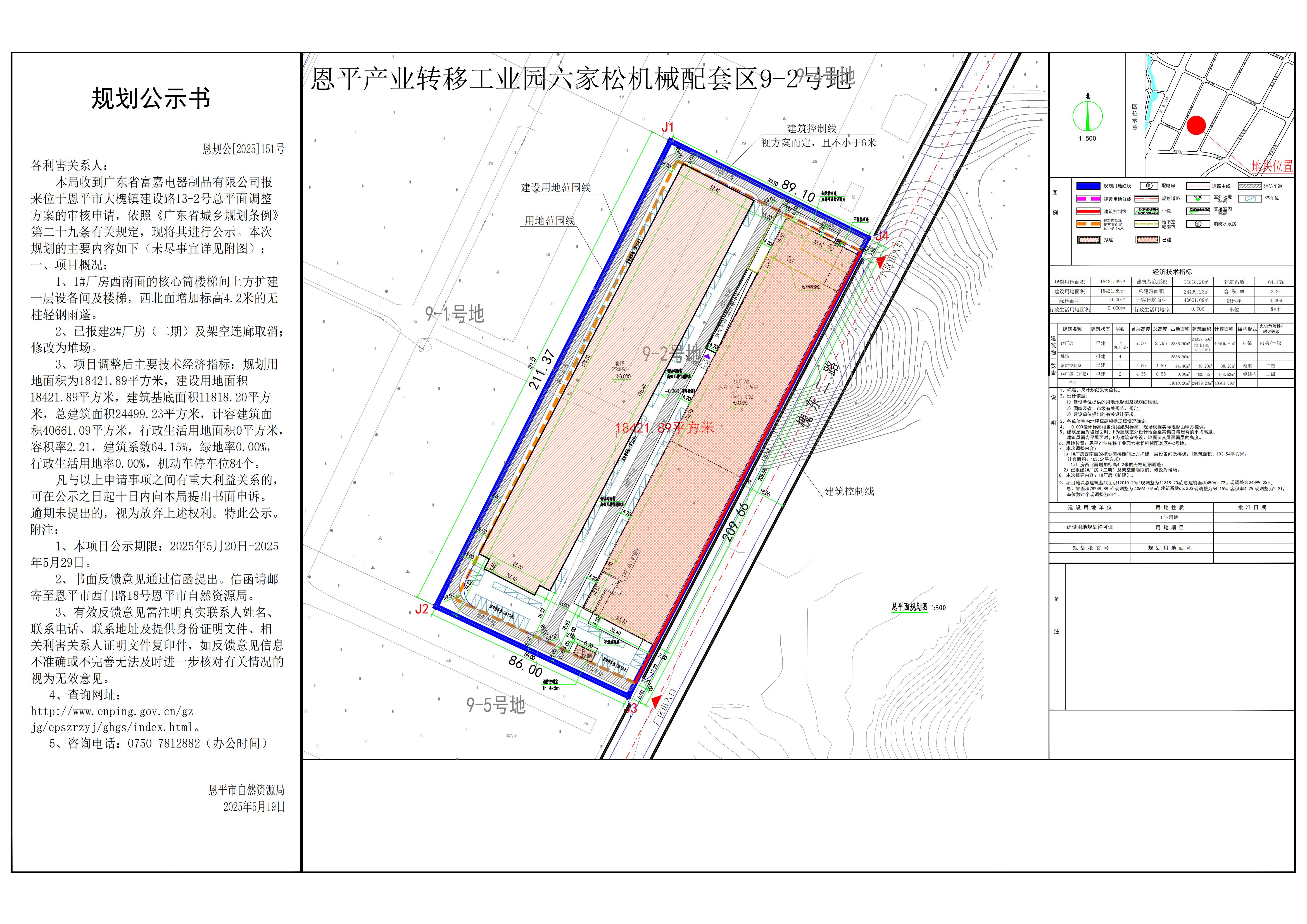 恩規(guī)公[2025]151號 規(guī)劃公示書 關于恩平市大槐鎮(zhèn)建設路13-2號(廣東省富嘉電器制品有限公司)的公示