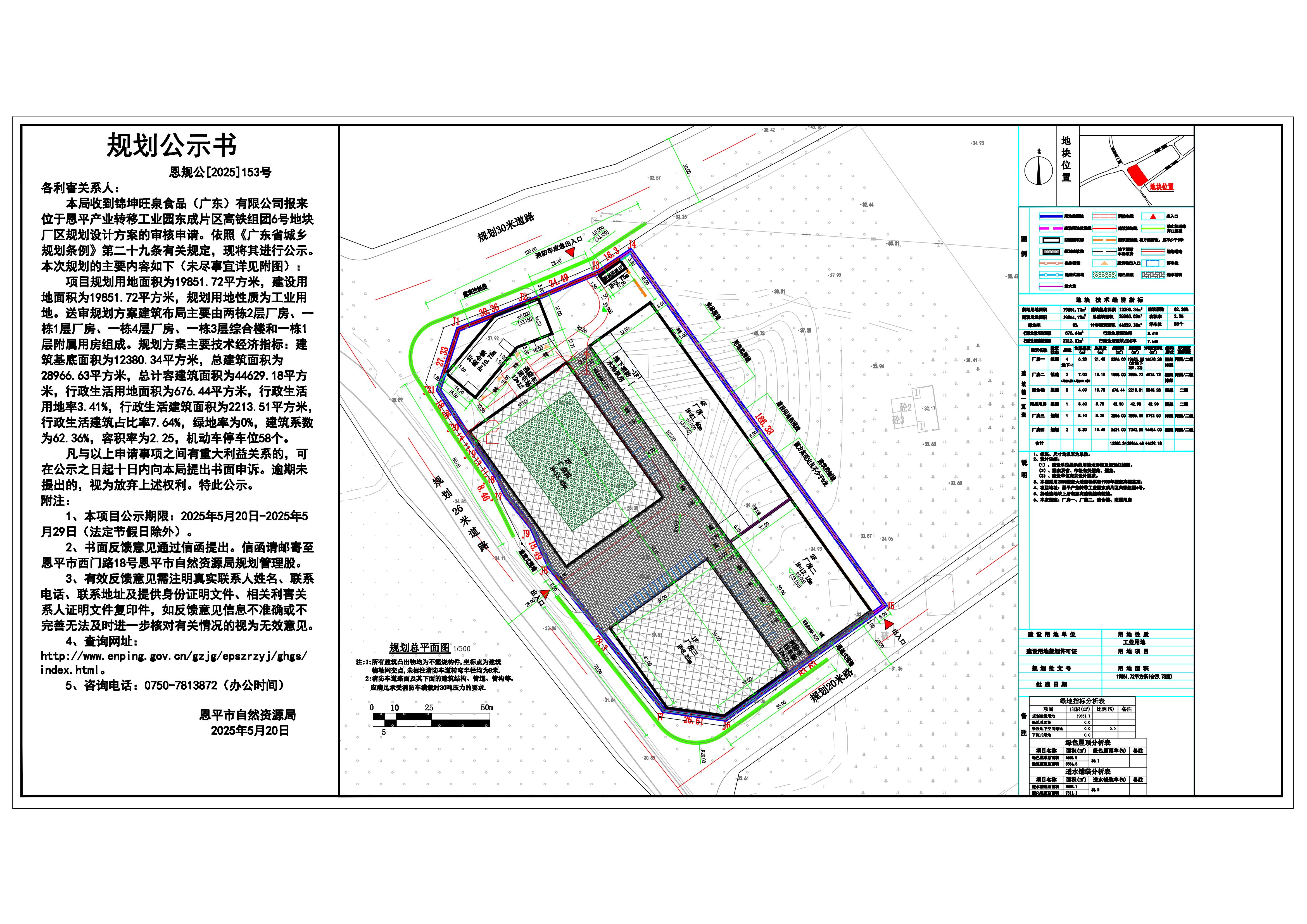 恩規(guī)公[2025]153號 關(guān)于恩平產(chǎn)業(yè)轉(zhuǎn)移工業(yè)園東成片區(qū)高鐵組團6號(錦坤旺泉食品(廣東)有限公司)的規(guī)劃公示書