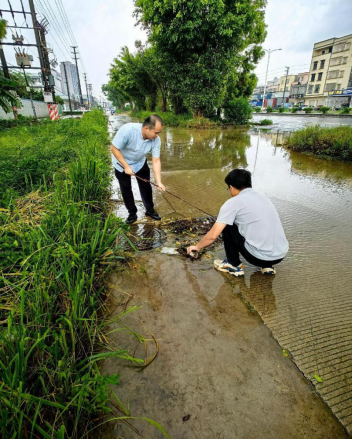 臺風影響期間,黨員干部沖鋒在前,24小時值守崗位,全力落實應急處置措施。第一是嚴格執(zhí)行“五?!币?,黨員先鋒隊分片聯(lián)系企業(yè),通過微信群、現(xiàn)場通知等方式,督促企業(yè)停工、停產(chǎn)、停學、停運、停業(yè),協(xié)助關(guān)閉廠區(qū)電源、加固門窗,確保人員全部撤離至安全區(qū)域,累計撤離275人。針對強降雨導致的部分路段積水,黨員干部帶頭蹚水作業(yè),聯(lián)合企業(yè)、施工單位清理排水堵點,快速排除積水,保障道路暢通,有效防范內(nèi)澇風險。