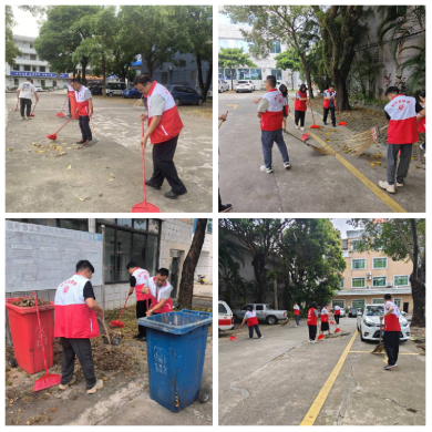 班子成員帶領(lǐng)黨員干部清理大院各處積水、落葉