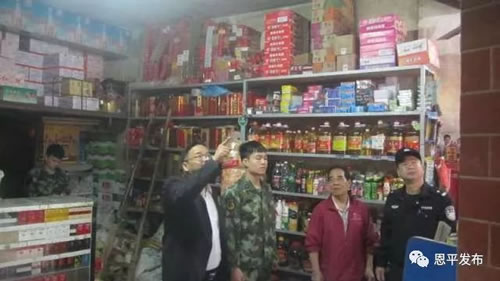 恩城街道辦負責人率隊深入茶坑、聯(lián)合、米倉等村委會的煙花爆竹銷點和廢品回收站,認真檢查各煙花爆竹銷售點是否證照齊全,消防安全措施是否到位,銷售點安全距離是否足夠,并提出整改要求。