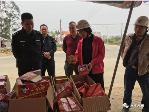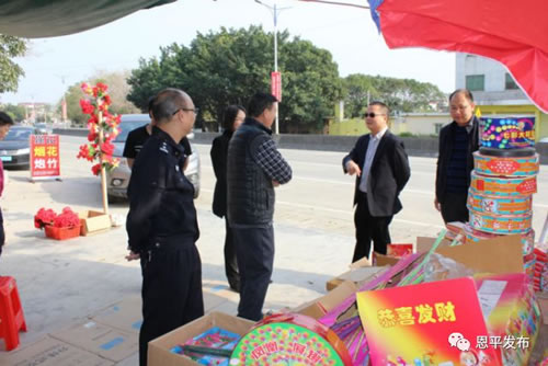 18日下午,恩平市副市長勞沈川率隊到全市煙花爆竹直銷點和燃放點開展安全生產(chǎn)大檢查,市府辦、市供銷社主要負責同志陪同。