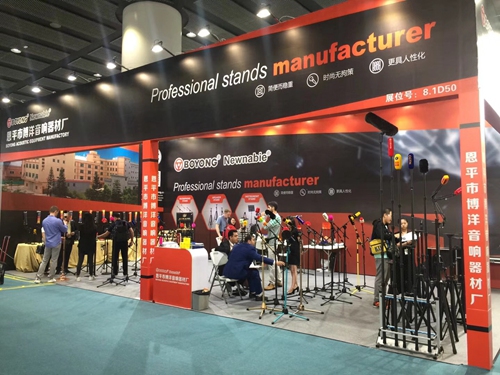 在恩平電聲館,展出的產(chǎn)品琳瑯滿目,包括各種麥克風(fēng)、調(diào)音臺(tái)、功放、音箱、娛樂(lè)系統(tǒng)、麥克風(fēng)支架等,應(yīng)有盡有。展位人頭涌動(dòng),觀展、洽談合作的客商絡(luò)繹不絕,工作人員忙個(gè)不停。也有不少企業(yè)選擇跳出恩平電聲館,在音響品牌館、專業(yè)音響?zhàn)^等展館展出,和來(lái)自全國(guó)各地的品牌企業(yè)一較高下。據(jù)統(tǒng)計(jì),恩平參展企業(yè)在本次“廣州展”上展出的麥克風(fēng)及電聲器材產(chǎn)品達(dá)1200多款,其中新產(chǎn)品超過(guò)400款。值得一提的是,今年展出的產(chǎn)品雖然仍然以麥克風(fēng)為主,但調(diào)音臺(tái)、功放、音箱等演藝裝備器材的比例明顯增加。年初獲得“中國(guó)演藝裝備產(chǎn)業(yè)基地”稱號(hào)的恩平,正在悄悄醞釀著一場(chǎng)華麗的轉(zhuǎn)身。