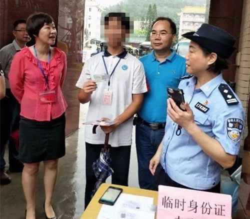 恩平市公安局在考點(diǎn)恩平一中設(shè)置高考安保現(xiàn)場服務(wù)點(diǎn),治安、交警、巡警、消防等部門進(jìn)駐。今天上午,市公安局快速反應(yīng),在考點(diǎn)現(xiàn)場及時(shí)為一名身份證過期和一名丟失身份證的考生辦理臨時(shí)身份證,并冒雨按時(shí)送到考生手中,讓兩名考生順利參加高考。