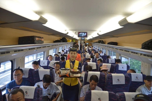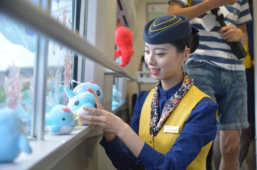 車廂內(nèi)環(huán)境舒適,而且還有漂亮的乘務(wù)員,真是車外車內(nèi)都是亮麗的風(fēng)景