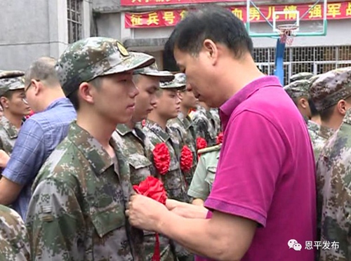 隨后,出席歡送儀式的領(lǐng)導(dǎo)為124名新兵佩戴上鮮艷的大紅花,祝愿他們在軍中一切順利,在各自的崗位上大展身手,建功立業(yè)。