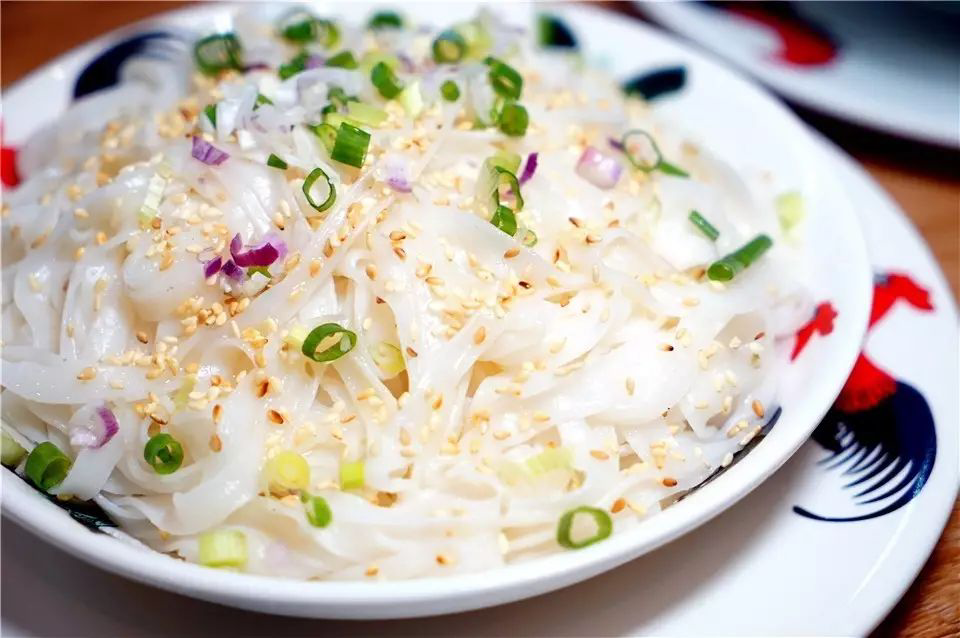 涼拌河粉:將河粉用涼水沖洗后瀝干水分,加入蒜末、姜末、辣椒、生抽、醋、香油等調(diào)料拌勻,還可以根據(jù)個(gè)人口味加入黃瓜絲、胡蘿卜絲、花生米等食材,制成清爽可口的涼拌河粉,適合夏季食用,能夠消暑解渴。