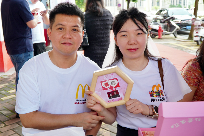 當天的婚姻登記處熱鬧非常。岑小姐和朱先生帶著小狗早早趕來,在人群中格外顯眼。“我們相識十年,特意選了七夕來登記,覺得特別有紀念意義”,岑小姐笑著說,“晚一點的號都約不上了,只約到早上9點這個時段。昨晚激動得沒睡好,現(xiàn)在拿到證反而覺得不太真實。”像他們一樣,許多新人都選擇在這個傳統(tǒng)節(jié)日完成婚姻大事,現(xiàn)場洋溢著幸福和期待。