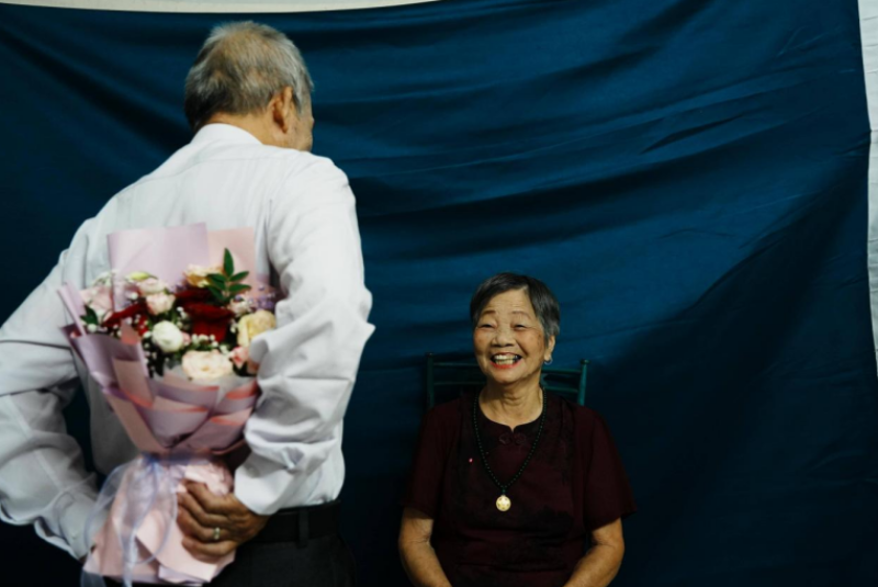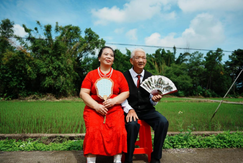 節(jié)前,恩平舉辦“時光留影,愛在七夕”公益攝影活動,數(shù)十對老年夫婦在志愿者幫助下細心妝扮,穿上旗袍與中山裝,在鏡頭前重現(xiàn)相伴半生的溫情瞬間。馮爺爺和李奶奶一邊整理衣領(lǐng)一邊回憶:“那時候哪有正式結(jié)婚照,都是去照相館拍一張一寸的?!彼麄兞钠鹩米孕熊嚱佑H、分一顆紅薯的往事,說到動情處,有人笑、也有人悄悄抹淚。