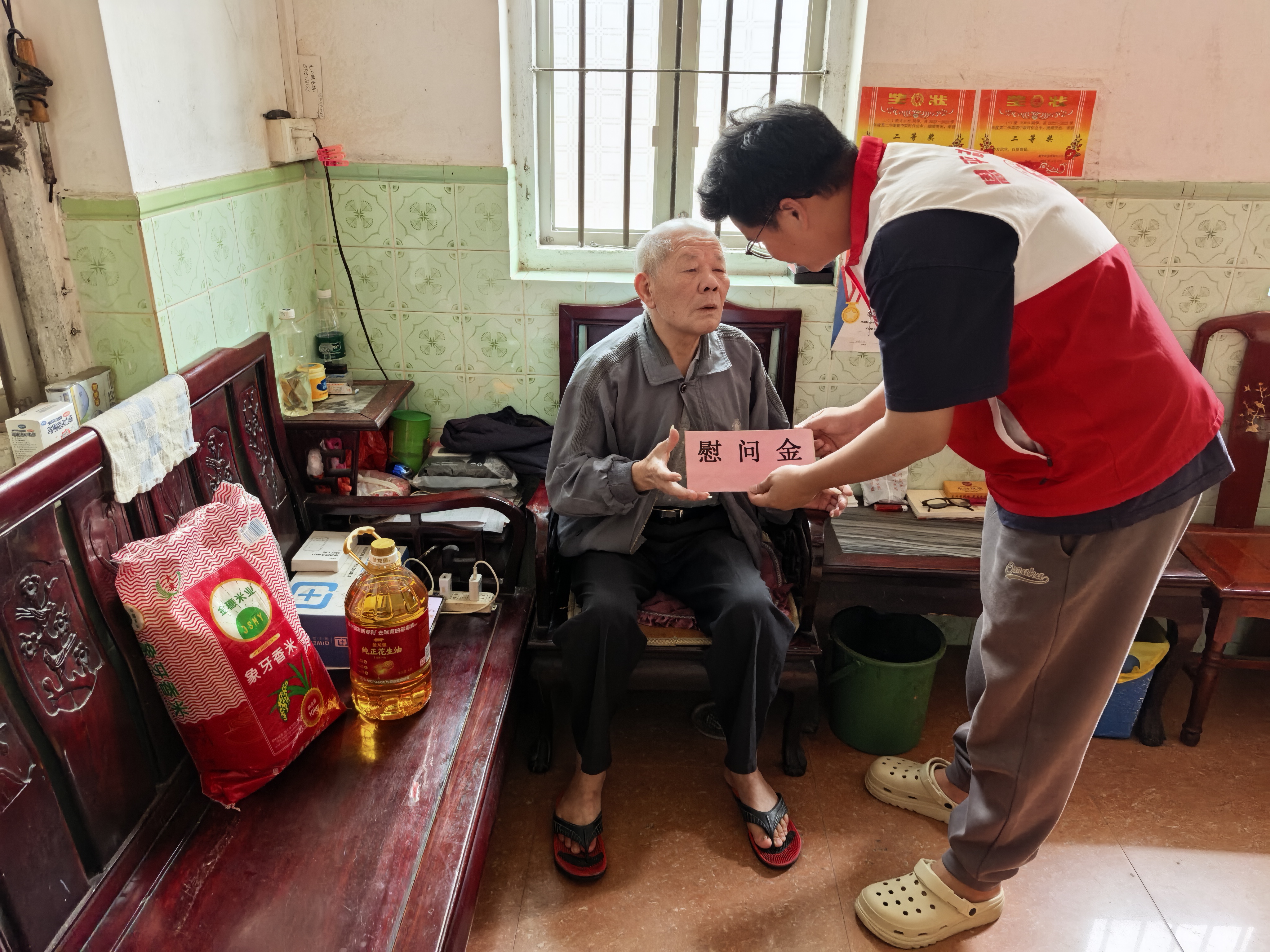 對于行動不便的老年人,我們直接上門走訪,實地察看其居住條件和生活狀況,并帶去節(jié)日祝福和慰問品。老年人對于我們的到訪慰問,紛紛表示感謝。