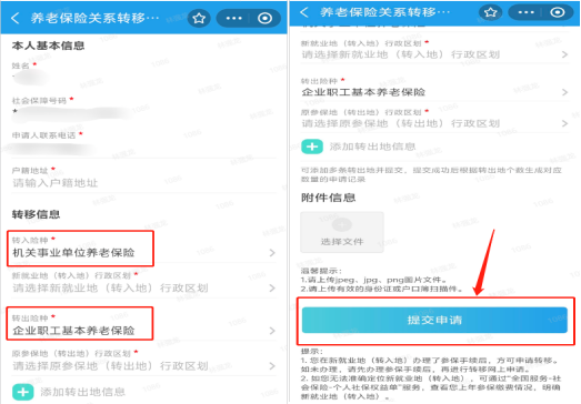 第二步:填寫本人基本信息和轉(zhuǎn)移信息及上傳附件信息——選擇【提交申請(qǐng)】。