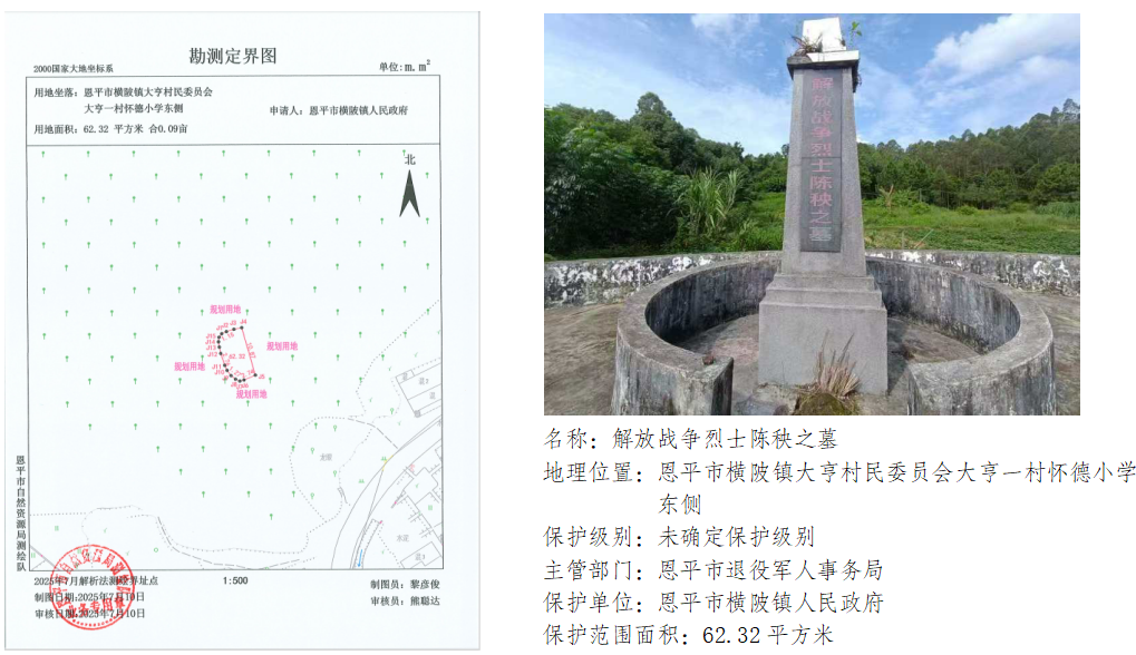 關(guān)于對(duì)恩平市鰲峰山黃飛烈士墓等18處烈士紀(jì)念設(shè)施劃定保護(hù)范圍公開(kāi)征求意見(jiàn)的公告