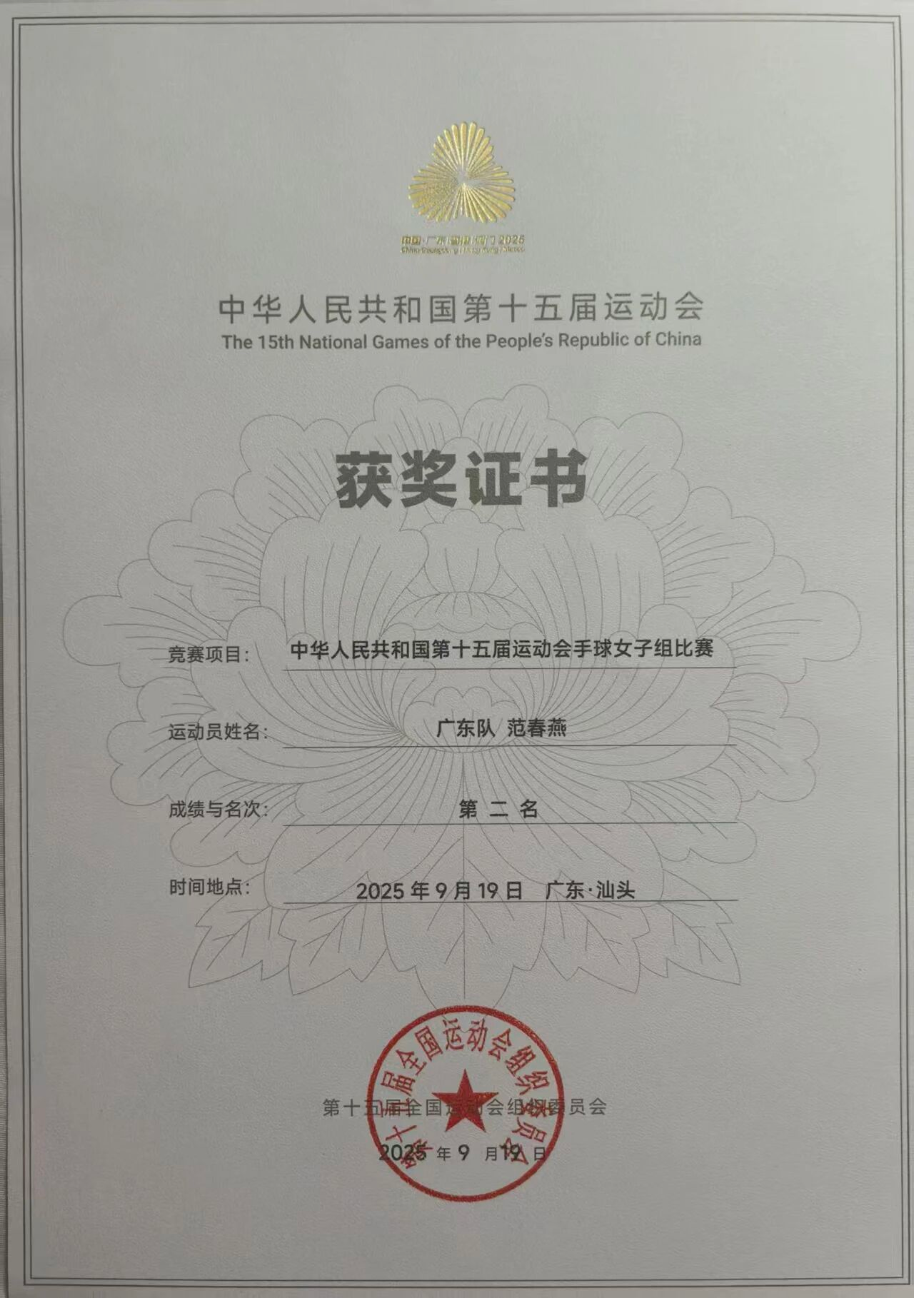 來(lái)自恩平市體育學(xué)校的國(guó)家級(jí)運(yùn)動(dòng)健將范春燕,作為廣東女子手球隊(duì)成員征戰(zhàn)第十五屆全運(yùn)會(huì),助力隊(duì)伍奪得女子手球項(xiàng)目亞軍,刷新了廣東女手全運(yùn)會(huì)歷史最佳戰(zhàn)績(jī)。