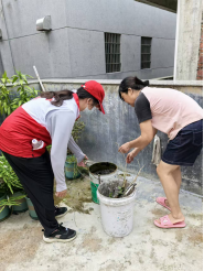 防控知識入戶入心是關鍵。同志們采取“分組包片、責任到人”的方式,逐家逐戶開展“敲門行動”,逐家逐層排查“陽性水體”。他們耐心細致地向居民講解基孔肯雅熱的危害、傳播途徑及預防措施,重點科普“防蚊滅蚊”的重要性;對于老年居民,同志們更是放慢語速、反復解釋,確保宣傳無死角、全覆蓋。同時,協(xié)助居民清倒積水、清理雜物等蚊蟲孳生地,手把手教居民群眾如何使用派發(fā)的滅蚊用品等,發(fā)動居民一起構建一道堅實的防控網(wǎng),提升居民的自我防護意識和能力。