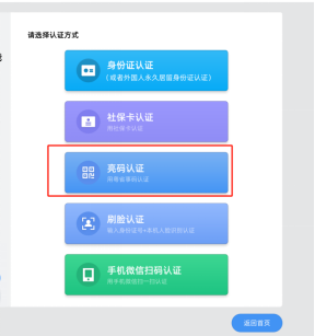 1.在“粵智助”登錄時,在選擇認證方式界面選擇“亮碼認證”。