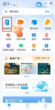 2.在手機“粵省事”中選擇出示“粵省事碼”。選擇“港澳居民來往內地通行證”“港澳臺居民居住證”登錄。