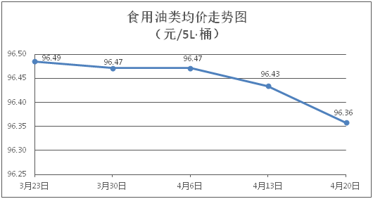 食用油類商品價格總體略降。所監(jiān)測的9種食用油(5L裝)商品價格波動情況為3漲4跌2平,綜合零售均價為每桶96.36元,環(huán)比下降0.08%。其中:魯花花生油、大豆油零售均價為每桶155.92元、61.69元,環(huán)比分別上漲0.02%、下降0.61%。