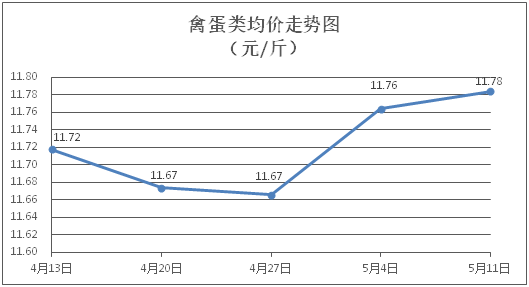 禽蛋類商品價(jià)格微幅上漲。所監(jiān)測(cè)的5種禽蛋類商品價(jià)格波動(dòng)情況為3漲1跌1平,綜合零售均價(jià)為每斤11.78元,環(huán)比上漲0.17%。其中:白條雞、白條鴨零售均價(jià)分別為每斤20.63元、15.24元,環(huán)比分別上漲0.19%、上漲0.20%;雞蛋、鴨蛋零售均價(jià)分別為每斤6.65元、7.19元,環(huán)比分別上漲0.61%、下降0.14%。