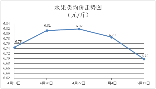水果類商品價(jià)格小幅下降。所監(jiān)測(cè)的6種水果商品價(jià)格波動(dòng)情況為5跌1平,綜合零售均價(jià)為每斤6.70元,環(huán)比下降1.30%。其中橙子、香蕉、葡萄零售均價(jià)分別為每斤6.29元、3.37元、14.13元,環(huán)比分別下降1.56%、下降0.30%、下降1.05%。