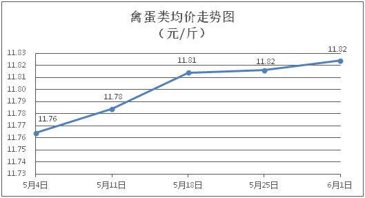 禽蛋類(lèi)商品價(jià)格穩(wěn)中略漲。所監(jiān)測(cè)的5種禽蛋類(lèi)商品價(jià)格波動(dòng)情況為1漲4平,綜合零售均價(jià)為每斤11.82元,環(huán)比上漲0.07%。其中:白條雞、白條鴨零售均價(jià)分別為每斤20.75元、15.31元,環(huán)比分別持平、上漲0.26%;雞蛋、鴨蛋零售均價(jià)分別為每斤6.65元、7.20元,環(huán)比均持平。
