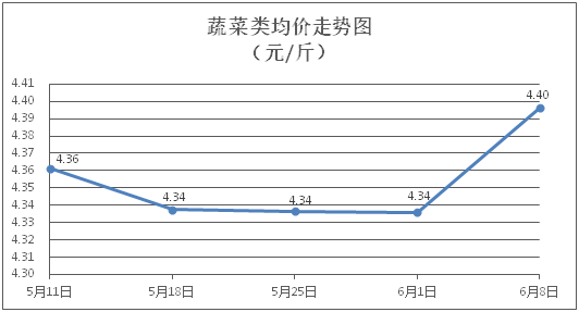 蔬菜類商品價(jià)格以漲為主。所監(jiān)測的32 種蔬菜商品價(jià)格波動情況為26漲6跌,綜合零售均價(jià)為每斤4.40元,環(huán)比上漲1.39%。其中:漲幅居前的品種包括花菜、白莧菜、蓮藕,零售均價(jià)分別為每斤4.60元、4.15元、5.47元,環(huán)比分別上漲5.26%、5.06%、4.59%;跌幅靠前的品種包括苦瓜、芥蘭、土豆,零售均價(jià)分別為每斤4.33元、5.18元、3.00元,環(huán)比分別下降2.70%、2.08%、0.66%。