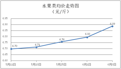 水果類商品價(jià)格小幅上漲。所監(jiān)測的6種水果商品價(jià)格波動情況為3漲2跌1平,綜合零售均價(jià)為每斤6.88元,環(huán)比上漲1.35%。其中橙子、香蕉、葡萄零售均價(jià)分別為每斤6.58元、3.43元、15.03元,環(huán)比分別上漲1.70%、上漲0.29%、上漲3.44%。