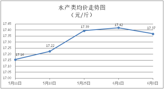 水產(chǎn)類商品價(jià)格有所回落。所監(jiān)測的9種水產(chǎn)商品價(jià)格波動情況為3漲4跌2平,綜合均價(jià)為每斤17.37元,環(huán)比下降0.29%。其中:草魚、鯽魚、羅非魚、基圍蝦零售均價(jià)分別為每斤11.20元、14.29元、9.12元、30.46元,環(huán)比分別下降0.09%、下降0.35%、上漲0.22%、下降0.88%。
