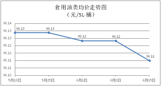 食用油類商品價格微幅盤整。所監(jiān)測的9種食用油(5L裝)商品價格波動情況為2漲2跌5平,綜合零售均價為每桶96.11元,環(huán)比下降0.01%。其中:大豆油、玉米油零售均價為每桶61.63元、76.08元,環(huán)比分別上漲0.02%、下降0.21%。