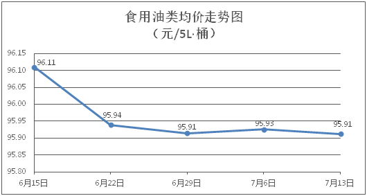 食用油類商品價格基本平穩(wěn)。所監(jiān)測的9種食用油(5L裝)商品價格波動情況為1跌8平,綜合零售均價為每桶95.91元,環(huán)比下降0.01%。其中:金龍魚花生油、玉米油零售均價為每桶102.83元、76.06元,環(huán)比分別持平、下降0.16%。