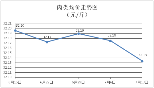 肉類商品價格微幅下降。所監(jiān)測的8種肉類商品價格波動情況為7跌1平,綜合零售均價為每斤32.13元,環(huán)比下降0.13%。其中:排骨、精瘦肉、肋條肉、牛肉、帶骨羊肉零售均價分別為每斤30.19元、18.90元、15.72元、46.65元、42.19元,環(huán)比分別下降0.03%、下降0.21%、下降0.76%、下降0.06%、下降0.05%。