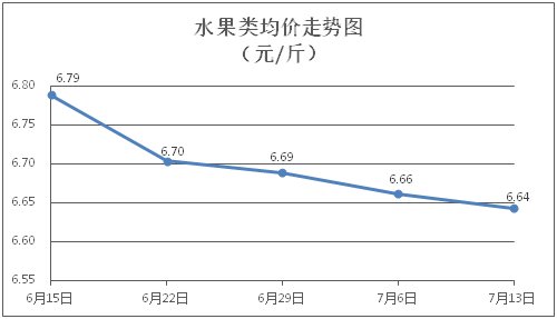 水果類商品價格穩(wěn)中微降。所監(jiān)測的6種水果商品價格波動情況為2跌4平,綜合零售均價為每斤6.64元,環(huán)比下降0.28%。其中橙子、蘋果、葡萄零售均價分別為每斤6.42元、7.64元、13.75元,環(huán)比分別持平、持平、下降0.88%。