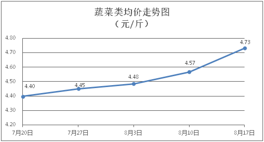 據(jù)本市21家農(nóng)貿(mào)市場監(jiān)測數(shù)據(jù)顯示,上周(8月11日至8月17日)市場上各類“菜籃子”商品供應充足,所監(jiān)測的7大類“菜籃子”商品價格環(huán)比總體表現(xiàn)為3漲3跌1平。其中:糧油類商品價格基本平穩(wěn),肉禽蛋類、水果類商品價格微幅下降,蔬菜類、水產(chǎn)類商品價格總體略漲。