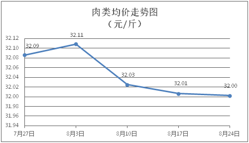 肉類商品價(jià)格微幅盤整。所監(jiān)測的8種肉類商品價(jià)格波動(dòng)情況為6漲2跌,綜合零售均價(jià)為每斤32.00元,環(huán)比下降0.01%。其中:排骨、精瘦肉、牛肉、帶骨羊肉零售均價(jià)分別為每斤30.35元、18.91元、46.25元、42.13元,環(huán)比分別下降0.26%、上漲0.05%、上漲0.06%、下降0.21%。
