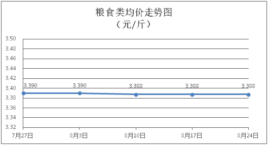 糧食類商品價(jià)格保持穩(wěn)定。所監(jiān)測的4種糧食類商品價(jià)格均持平,綜合零售均價(jià)為每斤3.388元。其中:絲苗米、面粉零售均價(jià)分別為每斤3.51元、3.39元,環(huán)比均持平。