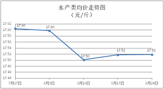 水產(chǎn)類商品價(jià)格升降互現(xiàn)。所監(jiān)測的9種水產(chǎn)商品價(jià)格波動(dòng)情況為4漲4跌1平,綜合均價(jià)為每斤17.52元,環(huán)比上漲0.01%。其中:草魚、鯽魚、羅非魚、基圍蝦零售均價(jià)分別為每斤11.35元、14.33元、8.98元、29.38元,環(huán)比分別上漲0.27%、下降0.83%、上漲0.11%、下降0.37%。