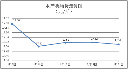水產(chǎn)類商品價(jià)格總體略降。所監(jiān)測(cè)的9種水產(chǎn)商品價(jià)格波動(dòng)情況為3漲5跌1平,綜合均價(jià)為每斤17.51元,環(huán)比下降0.05%。其中:草魚(yú)、鯽魚(yú)、羅非魚(yú)、基圍蝦零售均價(jià)分別為每斤11.46元、14.25元、8.94元、29.35元,環(huán)比分別上漲0.97%、下降0.56%、下降0.45%、下降0.10%。