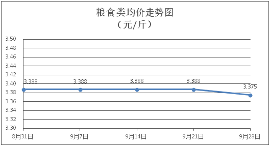 糧食類商品價(jià)格穩(wěn)中有降。所監(jiān)測(cè)的4種糧食類商品價(jià)格波動(dòng)情況為2跌2平,綜合零售均價(jià)為每斤3.375元,環(huán)比下降0.37%。其中:絲苗米、面粉零售均價(jià)分別為每斤3.51元、3.35元,環(huán)比分別持平、下降1.18%。
