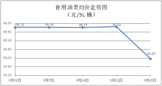 食用油類商品價(jià)格小幅下降。所監(jiān)測(cè)的9種食用油(5L裝)商品價(jià)格波動(dòng)情況為3漲6跌,綜合零售均價(jià)為每桶93.97元,環(huán)比下降1.92%。其中:魯花花生油、菜籽油零售均價(jià)分別為每桶156.63元、72.09元,環(huán)比分別上漲0.09%、下降1.96%。