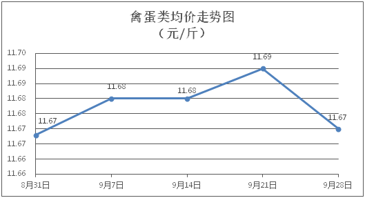 禽蛋類商品價(jià)格窄幅盤整。所監(jiān)測(cè)的5種禽蛋類商品價(jià)格波動(dòng)情況為2漲3跌,綜合零售均價(jià)為每斤11.67元,環(huán)比下降0.17%。其中:白條雞、白條鴨零售均價(jià)分別為每斤20.81元、15.12元,環(huán)比分別上漲0.05%、下降0.13%;雞蛋、鴨蛋零售均價(jià)分別為每斤6.40元、7.04元,環(huán)比分別上漲0.31%、下降0.71%。