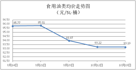 食用油類商品價格基本平穩(wěn)。所監(jiān)測的9種食用油(5L裝)商品價格波動情況為1漲1跌7平,綜合零售均價為每桶93.19元,環(huán)比下降0.03%。其中:金龍魚花生油、金龍魚調(diào)和油零售均價分別為每桶100.65元、70.46元,環(huán)比分別下降0.36%、上漲0.14%。