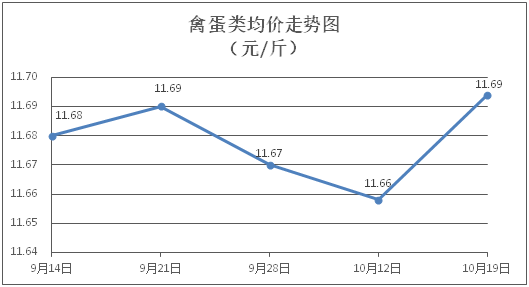禽蛋類商品價格微幅上漲。所監(jiān)測的5種禽蛋類商品價格波動情況為4漲1平,綜合零售均價為每斤11.69元,環(huán)比上漲0.31%。其中:白條雞、白條鴨零售均價分別為每斤20.90元、15.22元,環(huán)比分別上漲0.34%、上漲0.40%;雞蛋、鴨蛋零售均價分別為每斤6.39元、7.07元,環(huán)比分別上漲0.31%、上漲0.43%。