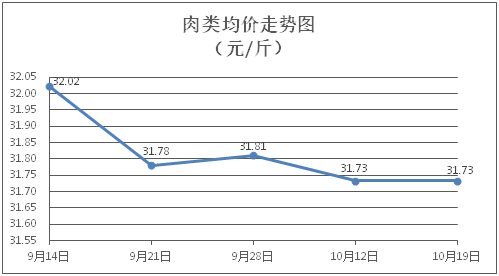 肉類商品價格窄幅盤整。所監(jiān)測的8種肉類商品價格波動情況為3漲5跌,綜合零售均價為每斤31.73元,環(huán)比下降0.004%。其中:排骨、精瘦肉、牛肉、帶骨羊肉零售均價分別為每斤30.27元、18.45元、46.82元、39.80元,環(huán)比分別下降0.59%、下降0.22%、上漲0.15%、下降0.13%。