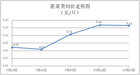 據(jù)本市21家農(nóng)貿(mào)市場監(jiān)測數(shù)據(jù)顯示,上周(10月13日至10月19日)市場上各類“菜籃子”商品供應(yīng)充足,所監(jiān)測的7大類“菜籃子”商品價格環(huán)比總體表現(xiàn)為2漲4跌1平。其中:糧油類商品價格基本平穩(wěn),肉菜類、水果類、水產(chǎn)類商品價格窄幅盤整,禽蛋類商品價格微幅上漲。