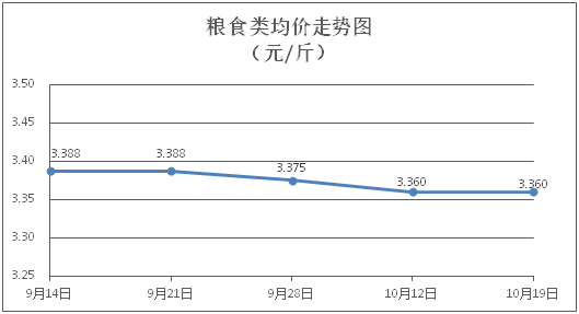 糧食類商品價格保持穩(wěn)定。所監(jiān)測的4種糧食類商品價格均持平,綜合零售均價為每斤3.360元。其中:絲苗米、面粉零售均價分別為每斤3.51元、3.32元,環(huán)比均持平。