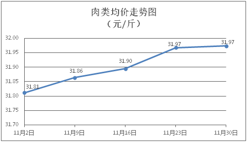 肉類商品價(jià)格微幅波動。所監(jiān)測的肉類商品價(jià)格波動情況為3漲2跌3平,綜合零售均價(jià)為每斤31.97元,環(huán)比上漲0.02%。其中:排骨、精瘦肉、牛肉、帶骨羊肉零售均價(jià)分別為每斤30.10元、18.38元、46.96元、41.43元,環(huán)比分別下降0.36%、下降0.11%、持平、上漲0.19%。