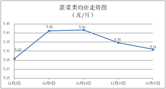 據(jù)本市21家農(nóng)貿(mào)市場監(jiān)測數(shù)據(jù)顯示,上周(11月24日至11月30日)市場上各類“菜籃子”商品供應(yīng)充足,所監(jiān)測的7大類“菜籃子”商品價(jià)格環(huán)比總體表現(xiàn)為4漲3跌。其中:糧油類、肉禽蛋類商品價(jià)格穩(wěn)中略漲,蔬果類、水產(chǎn)類商品價(jià)格總體略降。