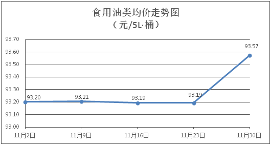 食用油類商品價(jià)格總體微漲。所監(jiān)測的食用油(5L裝)商品價(jià)格波動情況為3漲2跌4平,綜合零售均價(jià)為每桶93.57元,環(huán)比上漲0.41%。其中:胡姬花花生油、金龍魚調(diào)和油零售均價(jià)分別為每桶134.92元、70.17元,環(huán)比分別上漲1.28%、下降0.03%。