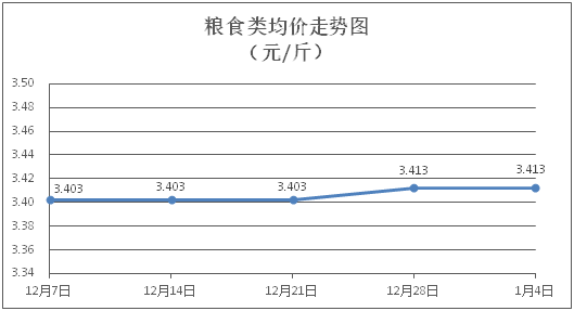 糧食類商品價格維持穩(wěn)定。所監(jiān)測的4種糧食類商品價格均持平,綜合零售均價為每斤3.413元。其中:絲苗米、面粉零售均價分別為每斤3.54元、3.38元,環(huán)比均持平。