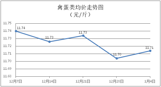 禽蛋類商品價格穩(wěn)中微升。所監(jiān)測的禽蛋類商品價格波動情況為1漲1跌3平,綜合零售均價為每斤11.71元,環(huán)比上漲0.09%。其中:白條雞、白條鴨零售均價分別為每斤20.83元、15.29元,環(huán)比分別上漲0.34%、下降0.13%;雞蛋、咸鴨蛋零售均價分別為每斤6.33元、8.93元,環(huán)比均持平。