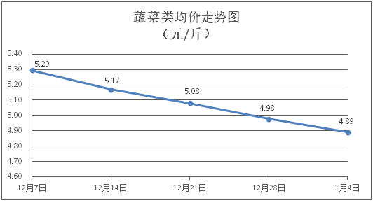 據(jù)本市21家農(nóng)貿(mào)市場監(jiān)測數(shù)據(jù)顯示,上周(12月29日至1月4日)市場上各類“菜籃子”商品供應(yīng)充足,所監(jiān)測的7大類“菜籃子”商品價格環(huán)比總體表現(xiàn)為3漲3跌1平。其中:糧油類商品價格基本平穩(wěn),肉禽蛋類、水產(chǎn)類商品價格窄幅盤整,蔬果類商品價格有所下降。